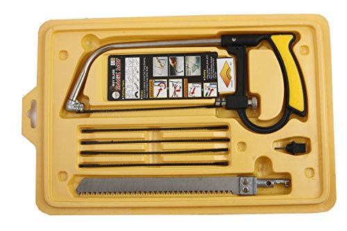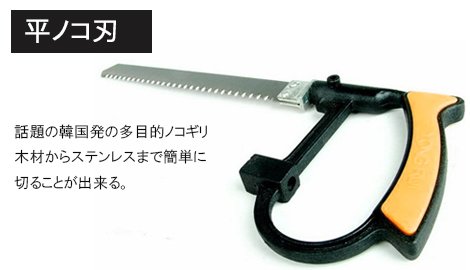 韓国で生まれた、何でも切れる万能のこぎり。 試用できる材質多数。あらゆる方向にスムーズにカット。糸鋸替え刃5本付き。 【使用できる材質】 アルミニウム、釘、パイプ、アクリル、木、ゴム、ロープ、電線、竹、ほか 【サイズ(約)】 糸ノコ12cm、ストレート刃15cm
