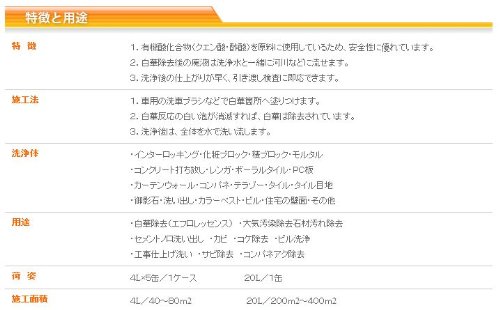 - 環境にやさしい無公害のコンクリート白華(エフロ)除去剤ブロック塀、外壁などの汚れ落としに