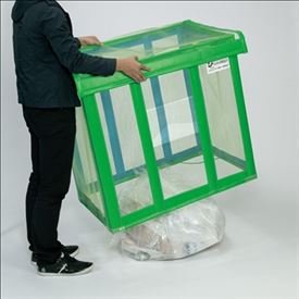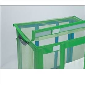 ●折り畳みできることを第一に設計されたゴミ枠です。底面を開ける事によって、簡単にゴミの回収ができるので、箱ではなく、枠というわけです。収集場所を道路の脇などにする場合、普段からずっと設置するわけにはいきません。そんなとき、重たいゴミ収集庫だと、大変です。その点このゴミ収集枠であれば、折り畳みもできるので、移動も簡単です。中身も見えるので、分別収集が出来ているか、外からでも簡単にチェックできる点もうれしいですね。