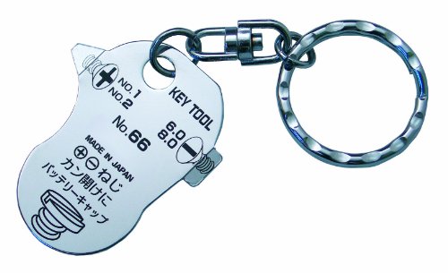 ●【用途】ネジの締め付け、緩め、缶のフタ開け等の機能を備えたキーホルダー。●【機能・特長】よく使うプラスネジ、マイナスネジ、そして缶のフタやバッテリーキャップ開けに便利な大き目のマイナスネジを装備しています。