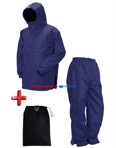 トオケミ(TOHKEMI) WR(撥水加工) アドバンスヤッケ(#401)+アドバンスパンツ(#402) + キャリーポーチの 3点セット 注: 上下同色同サイズです (メール便対象品) (ネイビー, M)