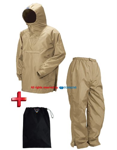 トオケミ(TOHKEMI) WR(撥水加工) アドバンスヤッケ(#401)+アドバンスパンツ(#402) + キャリーポーチの 3点セット 注: 上下同色同サイズです (メール便対象品) (カーキ, LL)