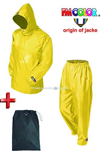 トオケミ(TOHKEMI) 強力撥水加工 ナイロンヤッケ(#1000 Mサイズ イエロー)+ナイロンパンツ(#2000 Mサイズ イエロー)+キャリーポーチセットの3点セット ヤッケとパンツは同サイズになります