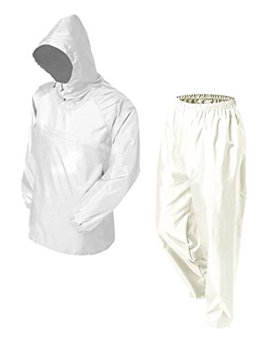 トオケミ(TOHKEMI) 強力撥水加工 ナイロンヤッケ(#1000 LLサイズ ホワイト)+ナイロンパンツ(#2000 LLサイズ ホワイト)+キャリーポーチセットの3点セット ヤッケとパンツは同サイズになります