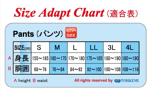 - サイズ : パンツ ・Mサイズ:身長165-175、ウェスト76-84 Lサイズ:身長170-180、ウェスト84-92 LLサイズ:身長175-185、ウェスト92-100 3Lサイズ:身長180-190、ウェスト100-108