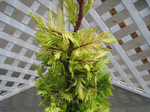 ゴールドライダーはコニファーの中でも人気がある品種です。高さも出せますのでシンボルツリーにも最適です。コニファーの中でも随一の発色です。ほかの品種と違って一年中金色をしているところも魅力です。