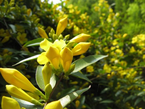 カロライナジャスミンは花が美しい品種です。全体に咲く花は見ごたえがあります。毒がありますので植え付け場所には考慮が必要です。