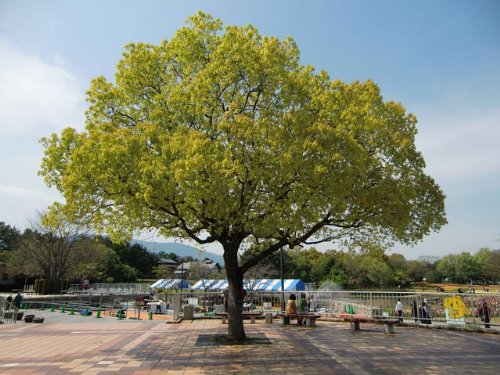 クスノキは大木になる木として有名です。大きい物になると幹周りが5m以上になる固体もあります。木に樟脳という成分が含まれていて天然の防虫効果があります。葉は皮質で厚く、密に出るため防音効果があると言われています。全体に特異な芳香があります。5~6月にあまり目立たない黄色い花が咲きます。晩秋に小さな黒い実がなりますが、食用には適しません。常緑樹でよく緑化木として利用されています。各地に名木が多く、様々な自治体や学校の木として指定されています。