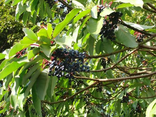 ユズリハは10m程度まで成長する常緑高木です。葉はらせん状につきます。若葉が出た後に古い葉が自然と落葉するためこの名前が付きました。そのため昔から正月などの飾りつけの縁起物として重宝されました。雌雄異株です。実は10~11月に黒紫色の1cm程度の実が多くなります。実には毒があり食用にはなりません。葉が大きく存在感があるため街路樹や庭木のアクセントに使われます。