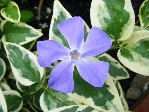 ビンカマジョールは覆つる性の半常緑種です。葉は3cm程度で発色が美しいです。下部元から多数の茎を出します。花は春に小さな一重の花が咲きます。花が多い品種ではないため花を観賞する場合はまとまって植えつける必要があります。非常に強健で放任していても元気に成長します。