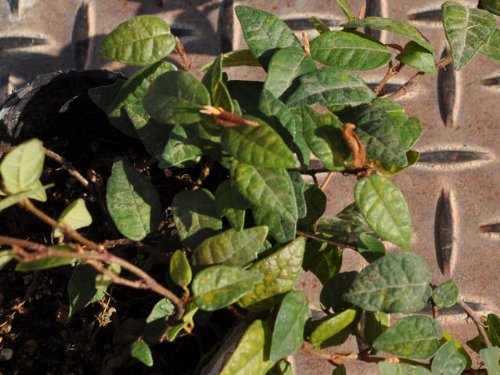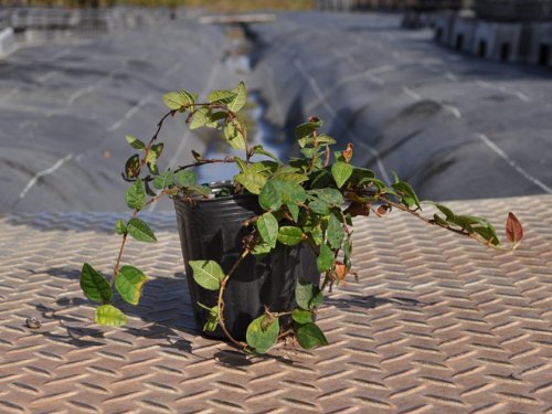 ヒメイタビは登はん性が強い品種です。オオイタビによく似ていますが、葉がしわしわになるのと若枝に毛が多くつくことから見分けられます。