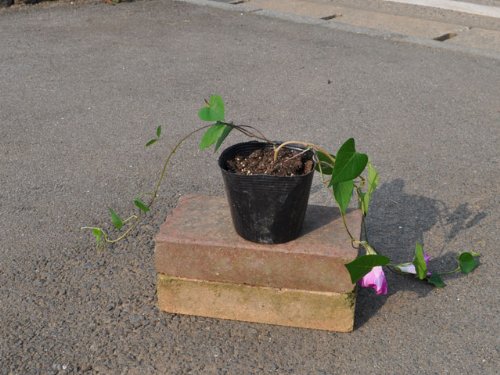 リュウキュウアサガオは沖縄原産の自生アサガオです。多年生、宿根性で関東以南では越冬できます。花は朝は青く、昼は紫色です。性質は剛健でどんどん成長して数mまで伸びます。緑のカーテンに利用されます。