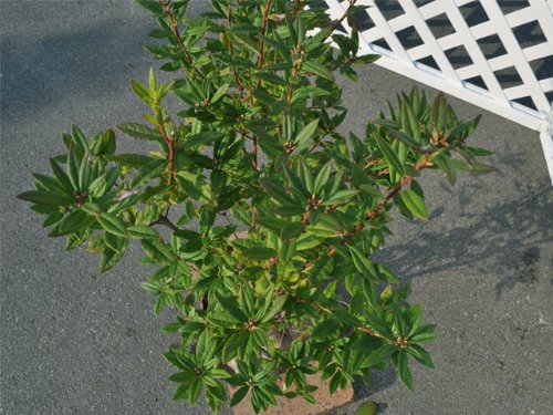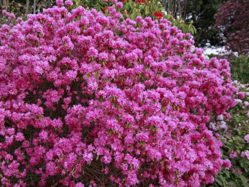 ヨシノツツジは落葉低木です。早春に美しい赤い花が咲きます。シャクナゲとツツジの交配品種でとても花つきがいいです。開花時には全体を覆い尽くすほどの花つきです。2002年園芸博覧会で金賞を受賞しました。