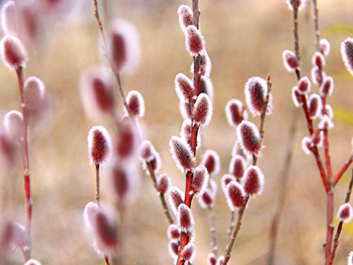 ネコヤナギ赤は花芽が最初は赤い皮に包まれています。早春に白い毛に包まれた部分が出てきます。雰囲気がとても美しいです。