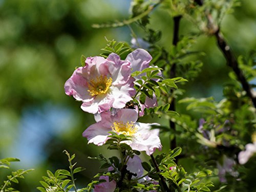 【商品情報】サンショウバラは5mになる落葉小高木です。日本が原産です。葉は奇数羽状複葉で、9~19個の小葉からなります。花は5cmほどの淡紅色の5弁花をつけます。枝に痛そうなトゲがたくさんあります。日本固有種の落葉小高木です。花は開花してからだんだん色が薄くなります。 そして2日ももたずに散っていきます。花を咲かせたあと、刺の多い偽果ができます。果実は果実酒に利用できるが、内部が虫食いになっているものが非常に多いので要注意です。
