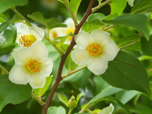 ヒメシャラの樹皮は滑らかで、淡赤黄色から淡赤褐色を帯びて光沢があります。幹がとても美しく有名な木です。日本三大美幹の1種です。秋には美しく広葉します。葉はほかの樹種より小さくどこか品があるように見えます。6~7月に小さく白いツバキに似た清楚な花をつけます。花はナツツバキに似ていますがそれよりも小柄です。実は9~10月につけます。シャラとの大きな違いは幹の色と葉の大きさと花の大きさが違います。