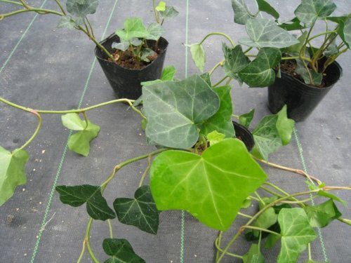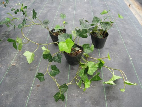 ヘデラはつる性の常緑品種です。吸着や匍匐で成長します。発色がよく、非常に人気がある品種寒さに強くマイナス5℃以上あれば越冬ができます。品種によって平面向き、登はん向き、下垂向きがあります。鉢植えの他にも庭植えにしてフェンスにからませたり、寄せ植えの材料にもよく使われる品種です。