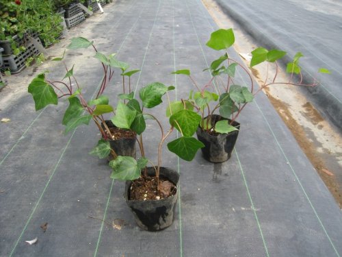 ヘデラはつる性の常緑品種です。吸着や匍匐で成長します。発色がよく、非常に人気がある品種寒さに強くマイナス5℃以上あれば越冬ができます。品種によって平面向き、登はん向き、下垂向きがあります。鉢植えの他にも庭植えにしてフェンスにからませたり、寄せ植えの材料にもよく使われる品種です。