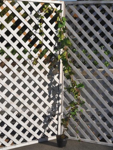 ヘデラはつる性の常緑品種です。吸着や匍匐で成長します。発色がよく、非常に人気がある品種寒さに強くマイナス5℃以上あれば越冬ができます。品種によって平面向き、登はん向き、下垂向きがあります。鉢植えの他にも庭植えにしてフェンスにからませたり、寄せ植えの材料にもよく使われる品種です。