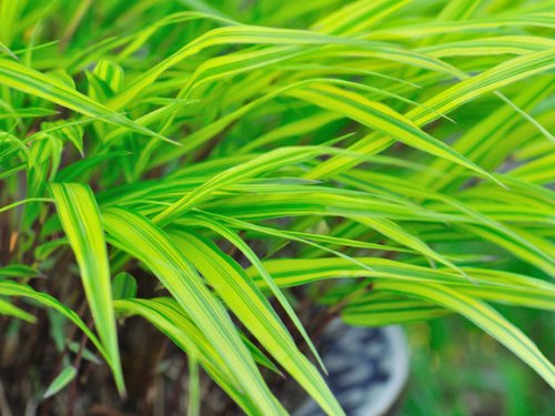 フウチソウは多年草です。日本原産の1属1種になります。葉は細く70cmぐらいに伸び良く茂ります。通常葉の裏側になっている部分が表にでていることから別名ウラハラグサと呼ばれます。株は自然にまとまります。風にサラサラとなびく姿は美しく、盆栽や山野草として古来から人気があります。品種により様々な葉色があります。
