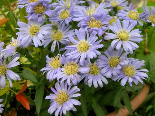 ミヤコワスレは多年草です。5~6月に菊の花が咲きます。山野に自生するミヤマヨメナの園芸品種です。品種により紫青、青、白、ピンクなどの花色があり、背が高くなるものから低いものまであります。名前の由来は、順徳天皇がこの花を見ると都への思いを忘れられるとの話からきています。花言葉は「別れ」「しばしの憩い」です。昔から人気があり品種改良が進んでいる品種です。