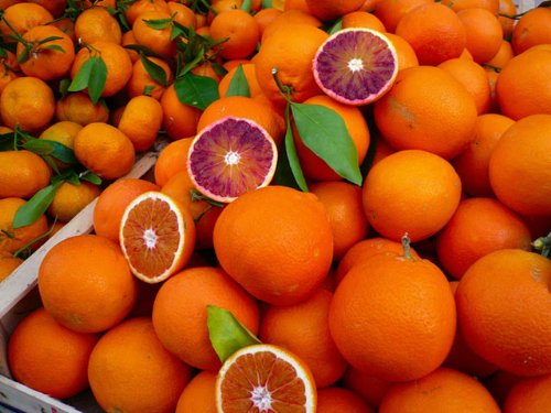 オレンジ/タッロコ(ブラッド)はイタリア原産の高級オレンジです。果実は果肉が赤色をしているのが特徴です。甘みと酸味のバランスがよく多汁で爽やかな味です。