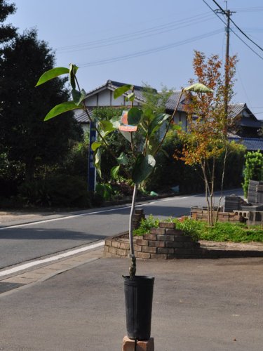 【商品情報】カキは15mになる落葉高木です。原産は日本、中国が原産です。葉は互生し広楕円形で先は尖っています。花は白色で葉の裏に下向きに咲きます。幹は茶褐色で不規則に割れており亀甲状です。秋を代表する果物です。幹は家具材としても利用されます。葉はお茶として加工され飲まれることもあります。渋柿はアルコール処理によって渋抜きするこができます。根が黒く枯れているように見えますが、それが特徴なので問題ありません。