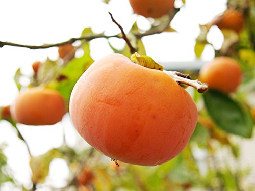 カキ/太月(渋柿)は太秋の交配種で、渋抜きをすると甘くて多汁です。果実の大きさは450g程で大きめです。他の柿に比べ自家結実性が強く、受粉樹が必要ありません。