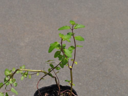ミントブッシュは半常緑低木です。ミントの仲間ではありませんが、葉からミントの香りがします。春から夏にかけて花がさきます。樹形は卵型になり、葉は1cm程度で鋸歯があります。