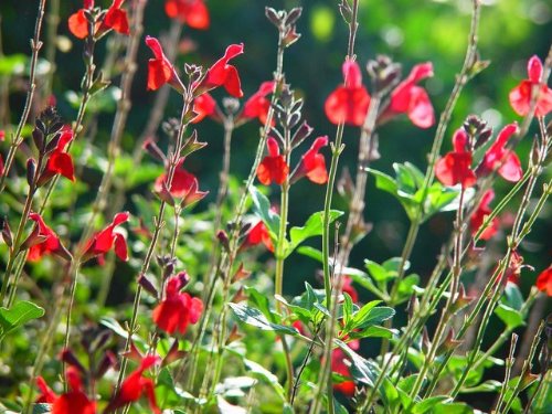 チェリーセージは赤系の花が美しい品種です。赤~赤白まで花色があります。育てやすく毎年花を咲かせます。