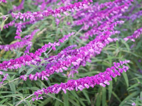 アメジストセージは1.5m程度の大株になり花穂が長く伸びる品種です。ベルベット状の美しい花を咲かせます。