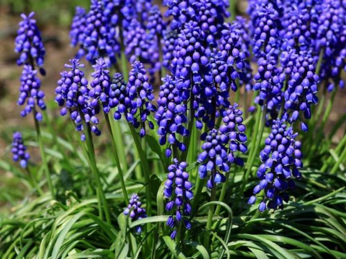 ムスカリは紫色の花が美しい品種です。ブドウのような花が群生します。