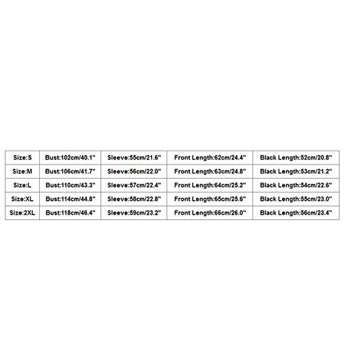 サイズ:S ---バスト:102cm / 40.1 "---袖:55cm / 21.6" ---前部の長さ:62cm / 24.4 "---黒の長さ:52cm / 20.8"
