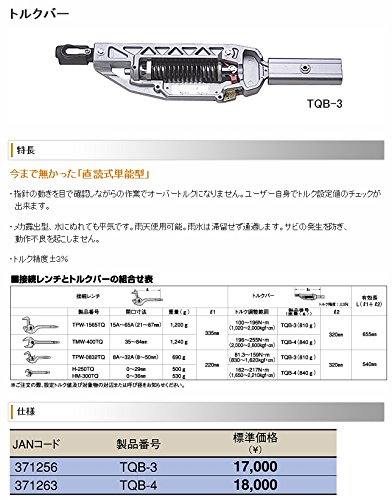TOP トップ工業 TQB-3 トルクレンチ(直読単能) トルクバー