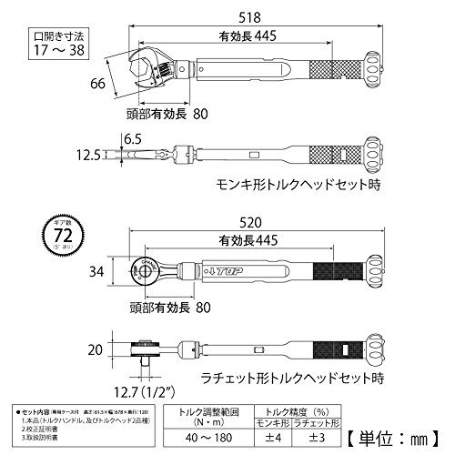 トップ(TOP) トルクレンチ モンキ形・ラチェット形 ケース付 TS-180NTK
