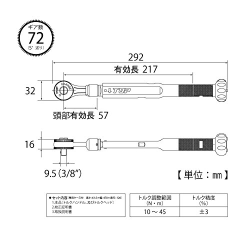 トップ(TOP) ラチェット形トルクレンチ ケース付 RH-45NTK