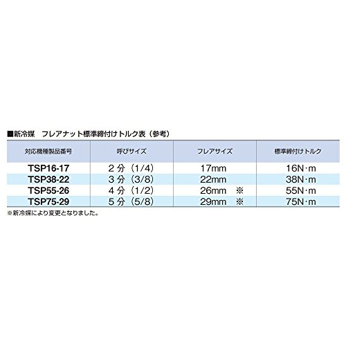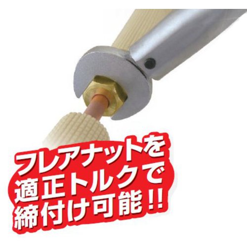 ●フレアナットを適正トルクで締め付け可能。●ルームエアコン、冷媒機器などのフレア管継手、フレアナット締め付け専用トルクレンチ。●設定トルク値に達すると、カチッと音がするか、手に軽いショックを感じ、締め付け完了。●信頼の校正証明書付。●製品重量:370g●パッケージサイズ/縦:850mm横:360mm高さ:40mm●パッケージ重量:370g●トルク能力:16N・m●全長:220mm●質量:365g●仕様:N・m仕様●トルク精度:プラスマイナス4%●校正証明書、取り扱い説明書付●新冷媒対応