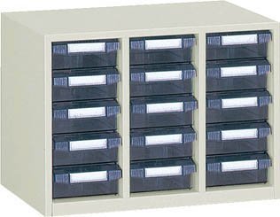 ●引き出しは、クリアで、内部の様子がよくわかります。●小物部品の保管・整理に最適です。●最大積載量(kg/台):30●引き出し色:透明●間口×奥行×高さ(mm):349×235×254●引き出し:B-1 15個●完成品●本体:スチール●引き出し:AS樹脂(NG:ABS樹脂)