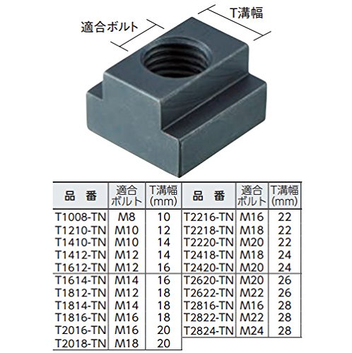●ねじ穴は貫通しませんのでT溝を傷つけることがありません●T溝用のボルト固定に●工作機械、ラジアルボール盤などのT溝用ボルト固定に●T溝幅(mm):10●ねじ寸法:M8●適合ボルト:M8●スチール(S45C)黒染仕上げ●焼き入れ(HRC25~30)