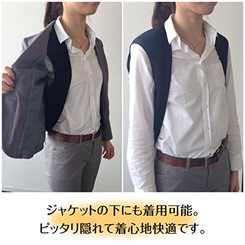 スーツのジャケットにちょうど隠れるシンプル設計で、薄着なのに中はポカポカ。暑くなってもコンパクトにたためるので、荷物としてもかさばらない。ボタンもチャックもないので羽織るだけの簡単着脱。