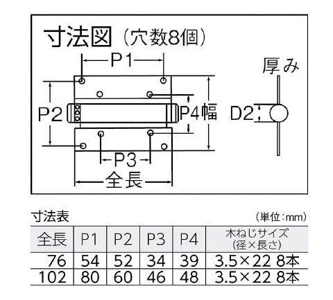 ●【特徴】●扉を片方に開けることができます。●常に扉が閉じた状態を保つようにばねが内蔵されています。●トルクの調整が可能です。●全長(mm):102●幅(mm):80●厚み(mm):1.5●D2(mm):20●ねじ穴数:8●穴径(mm):5●耐荷重(kg)2個使用時:10●表面処理:バフ研磨●取付方法:木ねじ(付属)●片開タイプ●開閉トルク調整付●【原産国】TW