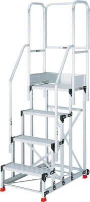 - ●最大使用質量(kg):150●天板高さ(m):1.2●天板寸法(mm):600×400●段数:4●タイプ:踏台4段+階段両手すり天場三方高さ1100mm●設置寸法(mm)間口×奥行:620×1035●設置寸法(mm)奥行:1035●設置寸法(mm)間口:620●組立式●アルマイト仕上