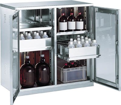[T-5055580]TRUSCO 耐震薬品庫 ガラス両開型 棚スライド式 900X500XH900 SW