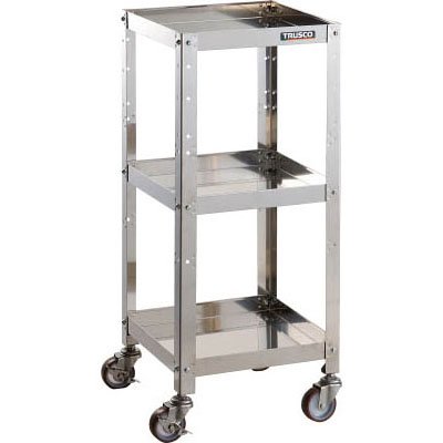 【仕様】●最大積載量(kg/台):150●均等積載量(kg/段):50●間口(mm):360●奥行(mm):360●高さ(mm):880●段数(段):3●組立式●キャスター:自在式75mm(2個)自在式(ストッパー付)75mm(2個)●こぼれ止め高さ:40mm●棚板調整ピッチ:既定位置のみ(注意)値が「-」の場合仕様条件に含まれません。●質量:9.0kg【特徴】●キャスター金具のパターンをスチール、ステンレスの2種類用意し、幅広いニーズに応えられるようにしました。【材質/仕上げ】●本体:ステンレス(SUS304)●キャスター金具:ステンレス(SUS304)●車輪:ナイロンウレタン生産国 日本