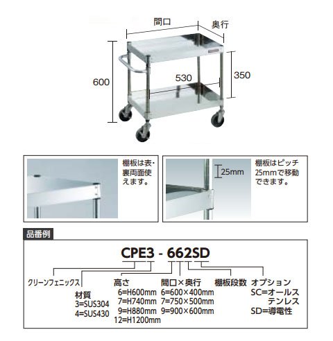 トラスコ 304クリーンフェニックス 600×400 2段 SUS金具 CPE3-662SC