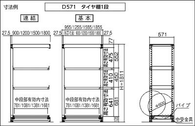 トラスコ M3用タイヤ受セット(受け×2個/パイプ×2本) 間口1800×奥行571mm M3Y66S