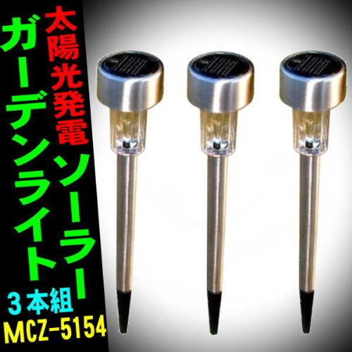 30089 トレードワン 3本組(MCZ-5154)光充電 ステンレス ソーラー ガーデン ライト 街灯 B◎
