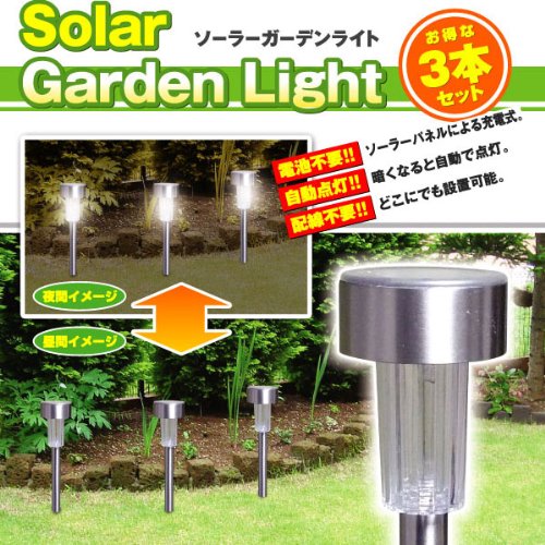 iimono117 暗くなると自動で点灯!ステンレスソーラーガーデンライト 3本セット