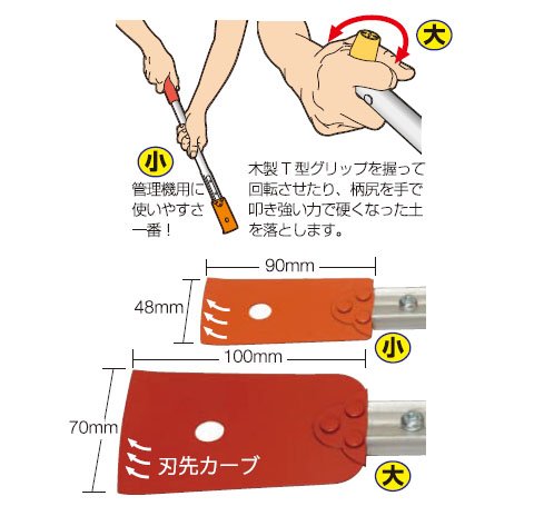 ●材質:刃:薄鋼材(JISSK-5)、柄:アルミパイプ、グリップ:木製(楓)
