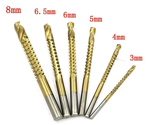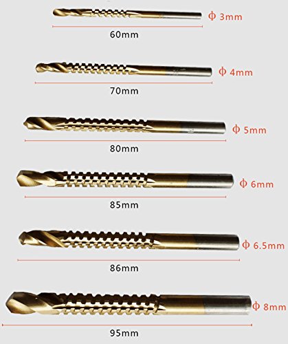 - 反溶着性、耐摩耗性に優れたチタンコーティング。摩擦抵抗が少なく、きれいな加工面に仕上がります。シャンク3mm、4mm、5mm、6mm、6.5mm、8mm 各2本